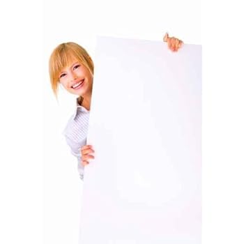 Female Holding Sign or Board - 30"H x 20"W - Peel and Stick Wall Decal by Wallmonkeys. Reviewed by Victor F. Rating: